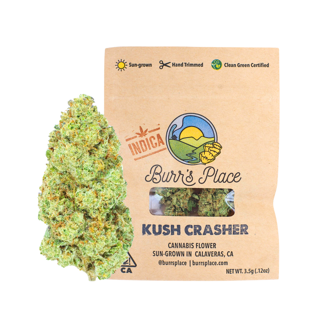 Kush Crasher is an indica-dominant hybrid that packs a punch of bold flavors—think diesel and earthy richness with a sweet, smooth finish. This strain starts with a mellow cerebral buzz, lifting your mood before melting into an intensely euphoric, tingly body high. Perfect for winding down, Kush Crasher delivers deep relaxation and a tranquil, sedative vibe that’s hard to resist. Burr's Place specializes in growing hand-trimmed sun-grown Cannabis flower – all of which have been mindfully cultivated & Clean-Green certified, so you always know what you’re smoking. Our products reflect the care and intention we put into them . . . We proudly stand behind everything we produce and don’t sell anything we wouldn’t smoke ourselves. Be sure to check out the Burr’s Place strains featuring our proprietary scratch & sniff packaging. Created in collaboration with Humboldt Seed Co., from steam-extracted terpenes directly from our best sun-grown flower!