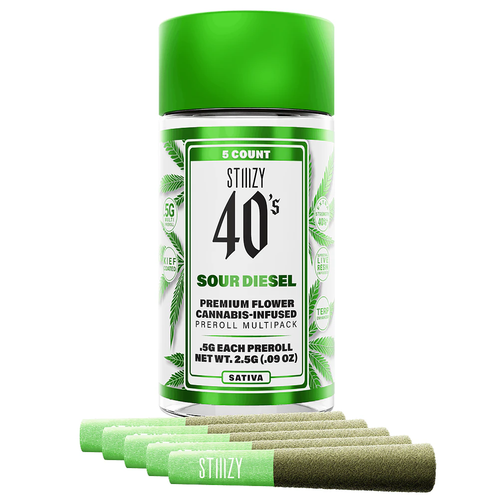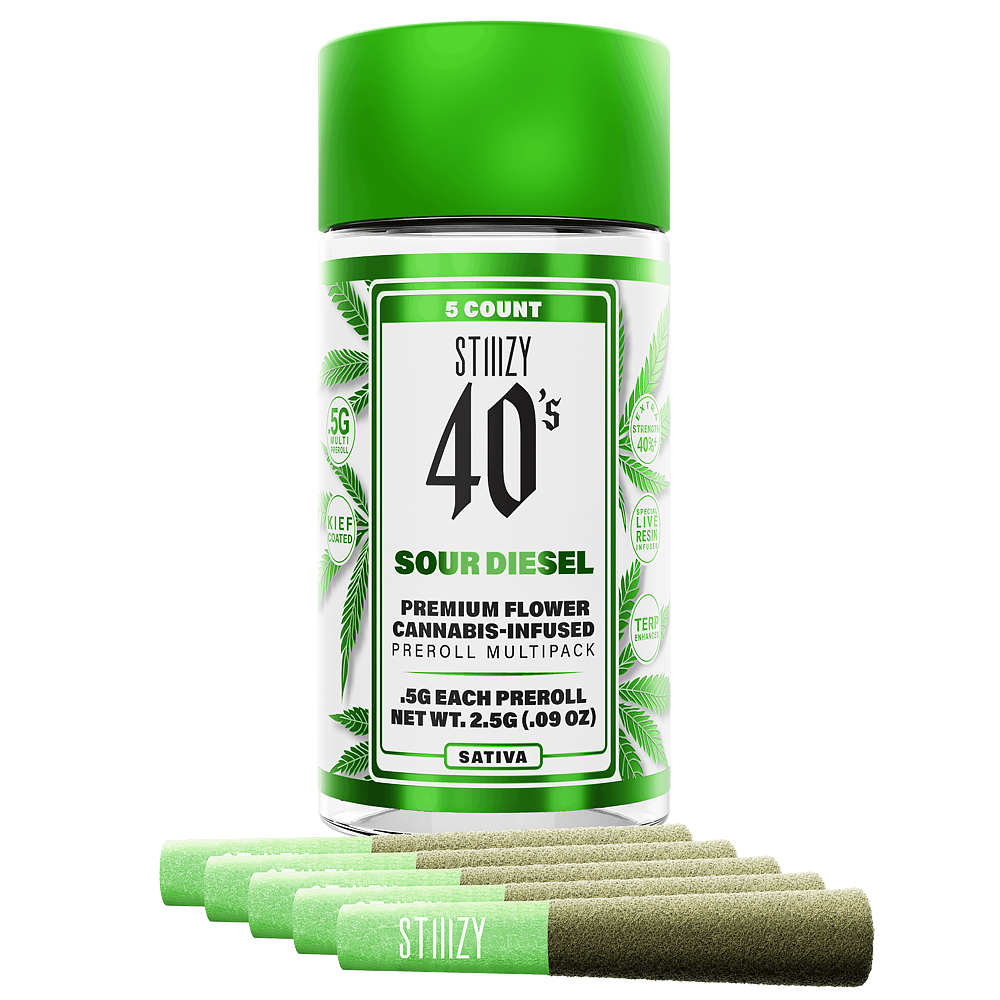 Elevate your pre-roll game. Stiiizy 40s pre-rolls are setting the standard with high potency, cannabis infused joints coated evenly with kief. Using our proprietary live resin infusion methods, we’ve designed every pre-roll to offer 40%+ THC potency with a unique flavor profile. With a smooth inhale and tasteful exhale, each and every Stiiizy 40 is packed with indoor grown flower, specifically made to ensure a potent and long-lasting high. Spark up the 40s.