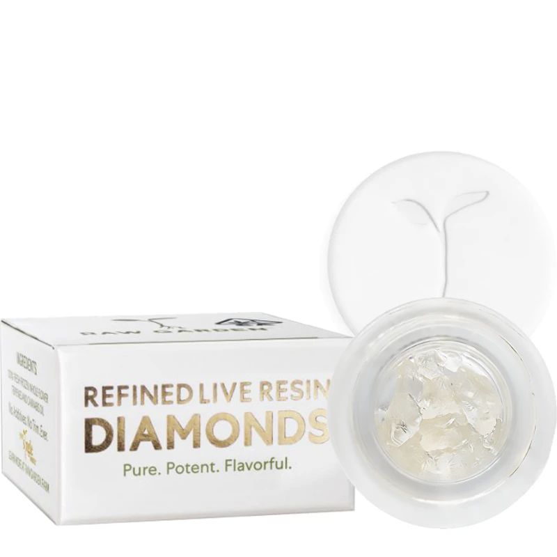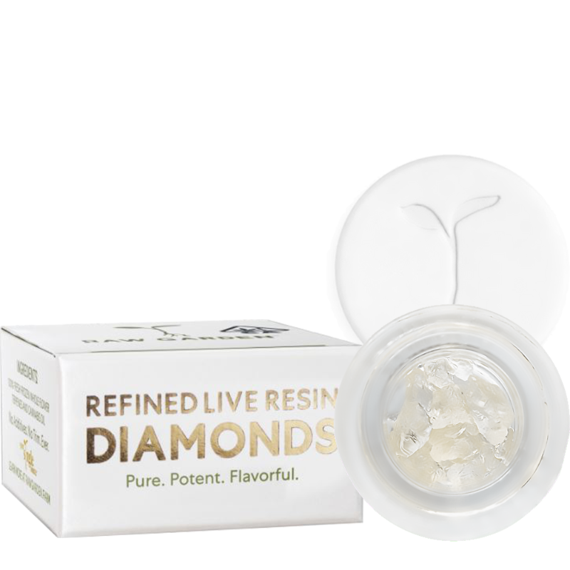 Raw Garden Refined Live Resin™ Diamonds are 100% Cannabis – no additives, fillers or artificial flavors. Made from 100% cannabis flower grown using mindful and sustainable farming practices. Raw Garden Live Resin™ Diamonds contain varietal-specific terpenes and THCa crystallines for the ultimate dabbing experience.