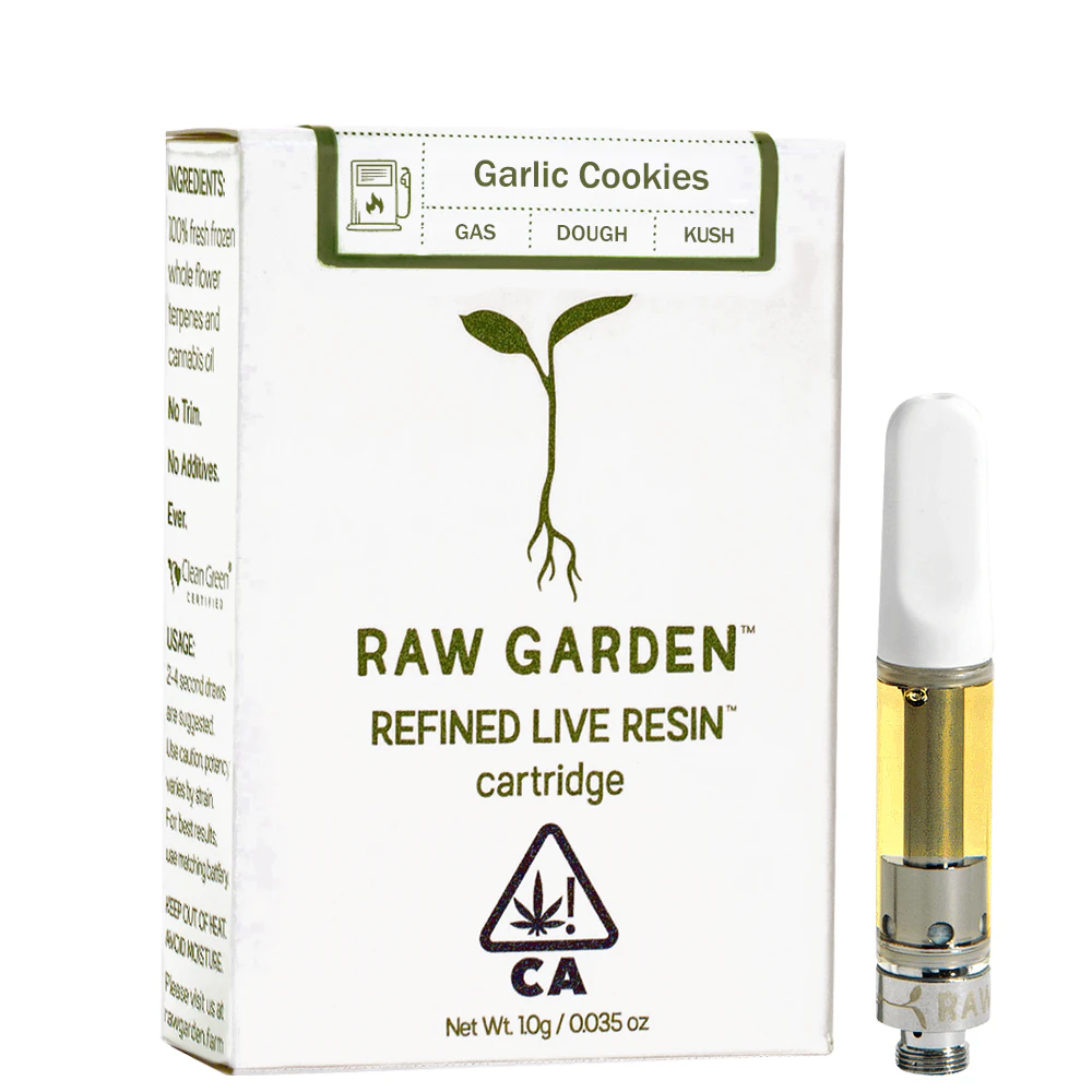 Raw Garden high-potency Refined Live Resin™ THC Vape Cartridges are 100% Cannabis – no additives, fillers, or artificial flavors. Made from Cannabis flower grown by Raw Garden in Central California using entirely organically-based and Clean Green-certified farming techniques that is Cryogenically Flash-Frozen immediately at harvest. These cartridges are high in THC and contain all the natural aromas, flavors, and terpenes of the high-quality source flower from which they are extracted.