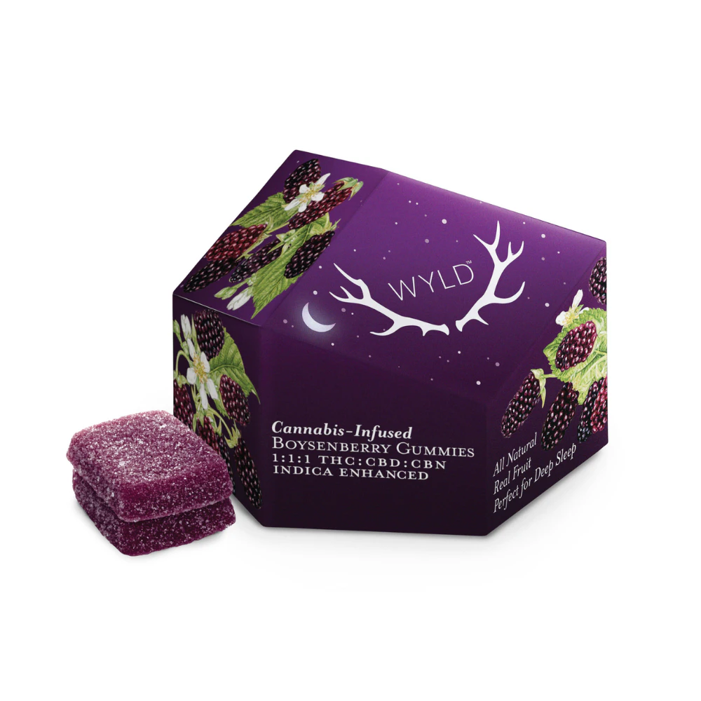 Hit the snooze button. Boysenberry THC:CBD:CBN gummies are perfect for deep sleep. CBD helps the body relax, while CBN can provide a restorative rest for the mind. When combined with THC, Wyld's Boysenberry gummy activates the Entourage Effect to set the landscape for a relaxing, restorative sleep.